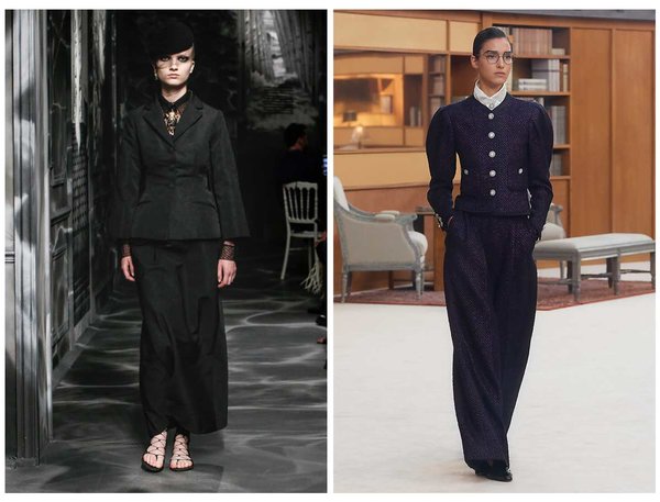 احتلّت الصدارة مجموعة Dior باللون الأسود التي تجسّدت في عرض مذهل يستذكر أساسيّات الموضة، فقد طبعت سترات البدلات والسراويل الفضفاضة المربوطة عند الخصر صورة الأناقة القصوى والحسّ الكلاسيكي. وبرزت قصّات الـ Bar الشهيرة بمظهر بسيط أضفى لمسة حديثة على الإطلالة الكلاسيكيّة الخالدة. لذا، من المثالي القول إنّ فحوى المجموعة تجسّد في البدلات العصريّة التي تعكس إطلالات Dior الكلاسيكيّة.