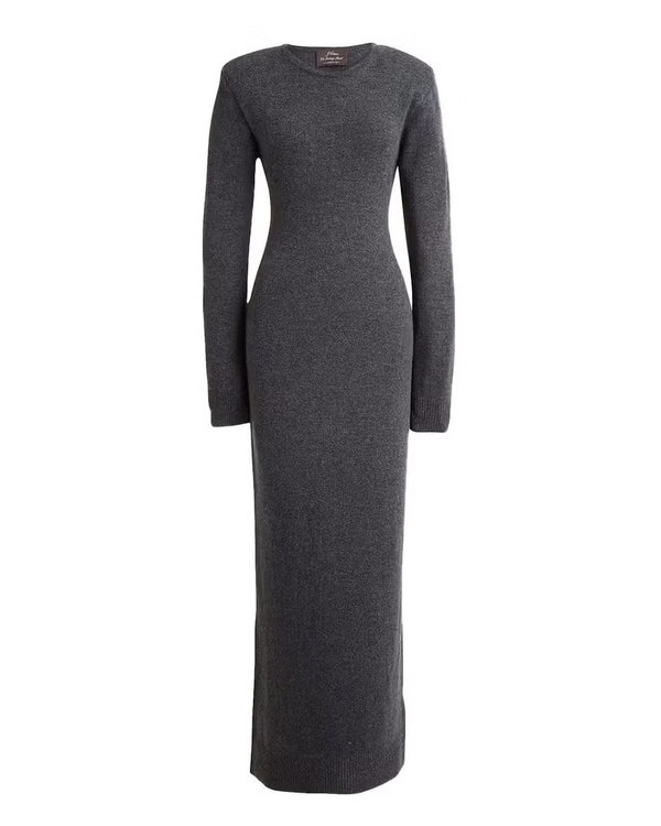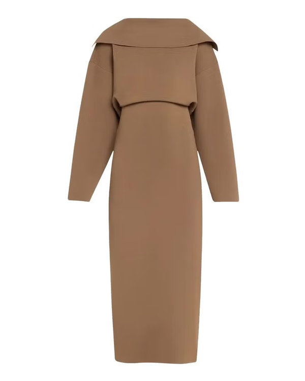 تحظى الفساتين الطويلة ذات الخصر المنخفض بشعبية كبيرة، والشتاء هو الوقت المثالي للاستثمار في واحدة منها. صُنعت الفساتين الضيقة من Khaite من مزيج من الصوف، ومصممة لتحمل أصعب الظروف. الصوف عبارة عن ألياف عازلة طبيعية ولها خصائص امتصاص الرطوبة، كما أنها قابلة للتنفس ومقاومة للرائحة، لذا ستكونين محمية من جميع الجوانب.