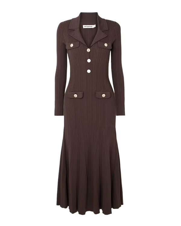 أضفي لمسة أنثوية إلى خزانة ملابسك الشتوية مع هذا الفستان المضلع من Self-Portrait. يتميز بفتحة رقبة مذهلة وأزرار ذهبية اللون، مما يمنحه كل التفاصيل المناسبة لإضفاء لمسة كلاسيكية.
