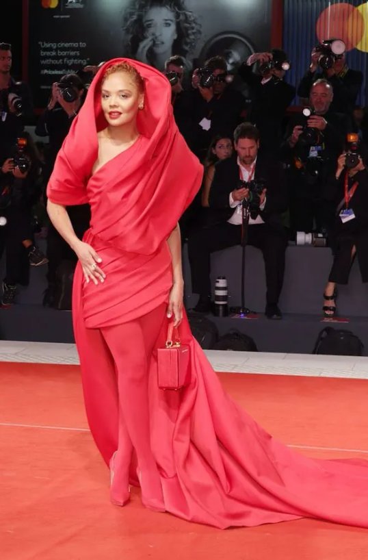 إطلالة Tessa Thompson أتت ملفتة للغاية بلونها الأحمر والتي عكست موضة المونوكروم، هذه الإطلالة التي حملت توقيع إيلي صعب والتي زيّنتها بحذاء طويل الساق باللون الأحمر أيضاً من كريستيان لوبوتان.