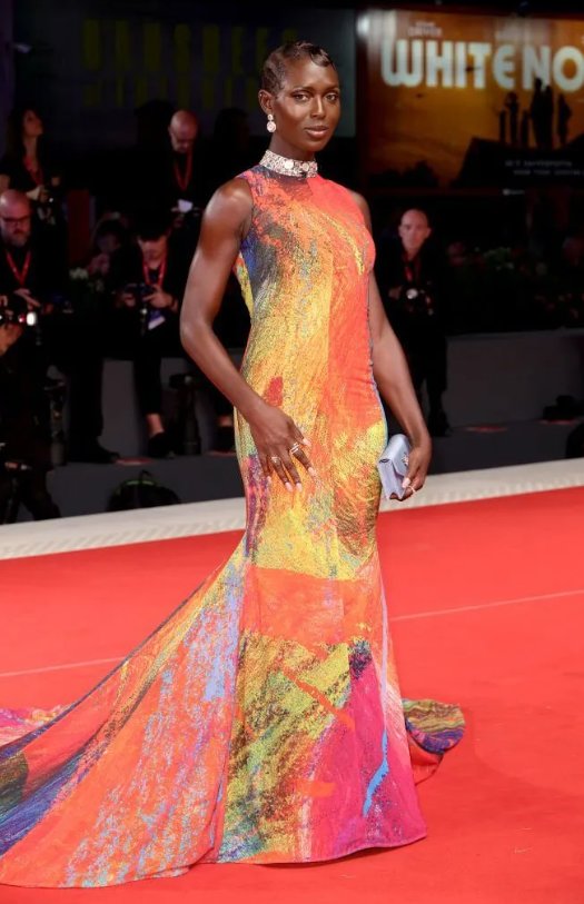 إطلالة أخرى لفتتنا وهي للنجمة Jodie Turner Smith التي تألقت بفستان مموّج بالألوان وزيّنته بمجوهرات من بولغري عكست بدورها موضة عقد التشوكر وقد حملت هذه الإطلالة توقيع Christopher John Rogers.