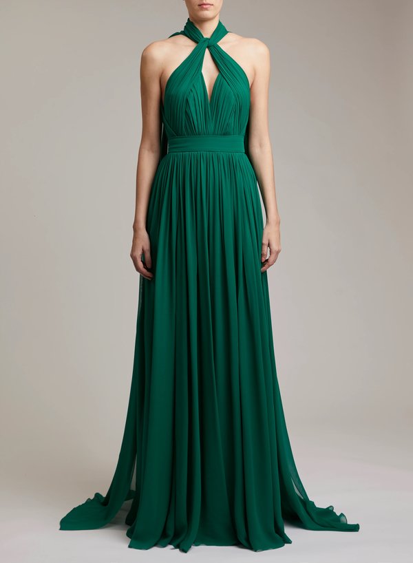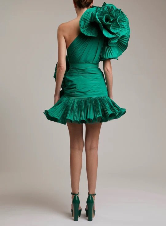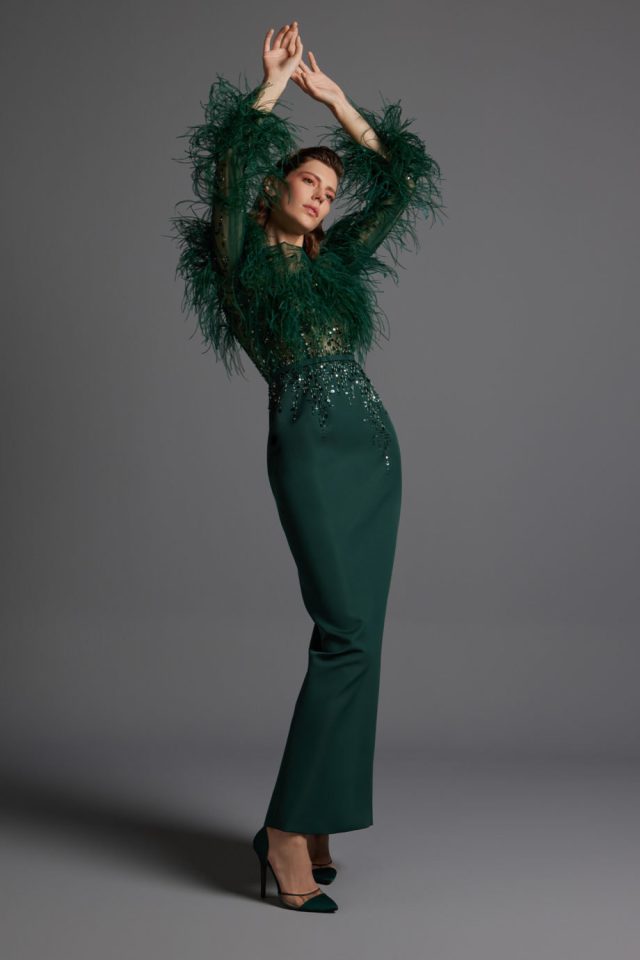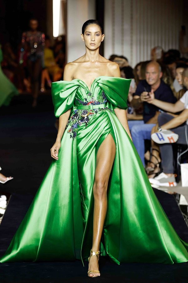من دار رامي العلي اخترنا لك فساتين اليوم الوطني السعودي باللون الأخضر الذي يرمز إلى علم السعودية .