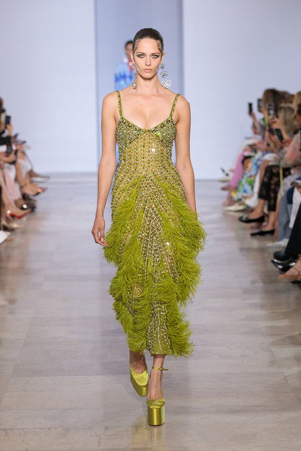 فستان اليوم الوطني السعودي من دار إيلي صعب ومن مجموعة الأخيرة للأزياء الجاهزة 2022، بتصميم ناعم وقماش خفيف الوزن وموديل عملي ومميز.