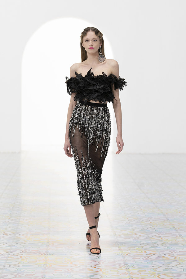 فساتين من دون اكمام مزينة بالريش