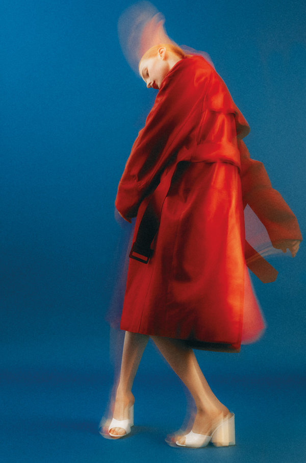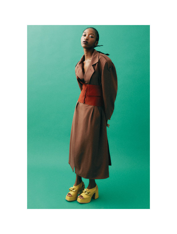 معطف trench من الصوف وقميص محبوك من TOD’s، كعب Chain Platform من Stella McCartney