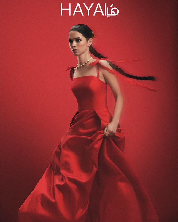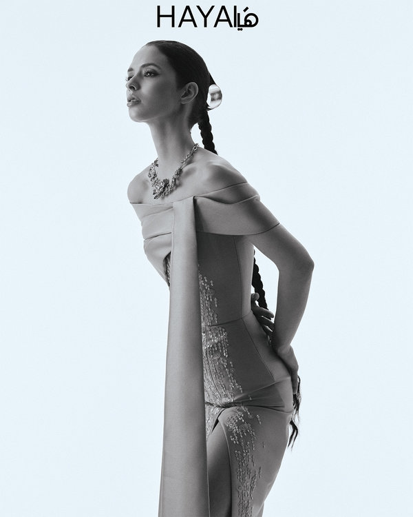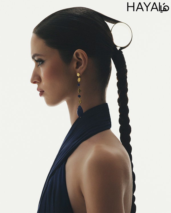 الصورة الرئيسية: فستان طويل من الحرير من Elie Saab وأقراط Goshwara من Sevar Studios