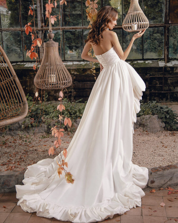 فستان عرس بقصة ذات حجم كبير تناسب الأعراس في الهواء الطلق أو حفل ما قبل الزفاف الرسمي.