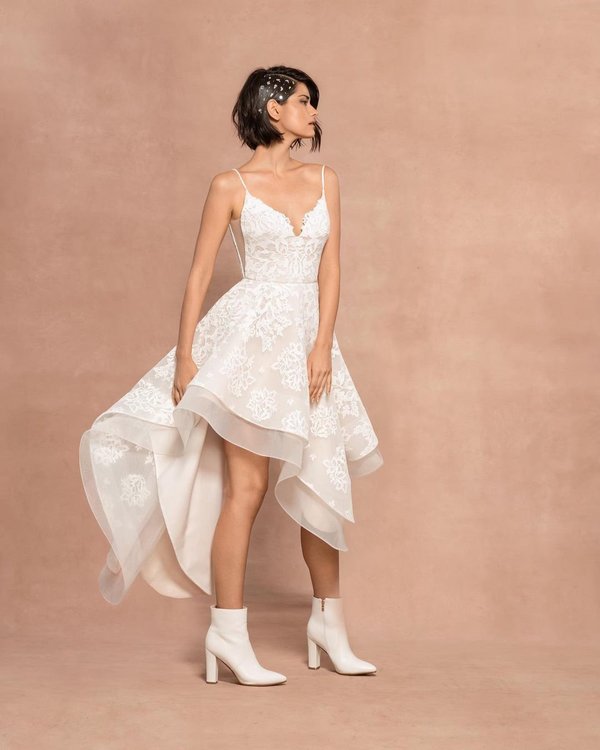 من قصات فساتين الزفاف التي رصدناها لك وهي رائجة هذا الموسم هي فساتين عروس بقصة قصيرة من الأمام وطويلة من الوراء أو قصة High Low. هذه القصة تناسب جميع أشكال الأجسام وهي تصاميم عصرية وعملية تناسب جميع العرائس. شاهدي ما جمعناه لك من صور فساتين عرس من هذه القصة.