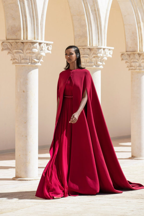 إطلالة مميزة ومحتمشة لليلة الحناء مع فساتين الكاب الناعمة والطويلة، ويمكنك خلال السهرة نزع الكاب لمزيد من الراحة والتألق بين ضيوفك. بهذه الطريقة تكونين قد اخترت فستانين لسهرة الحناء بفستان واحد.