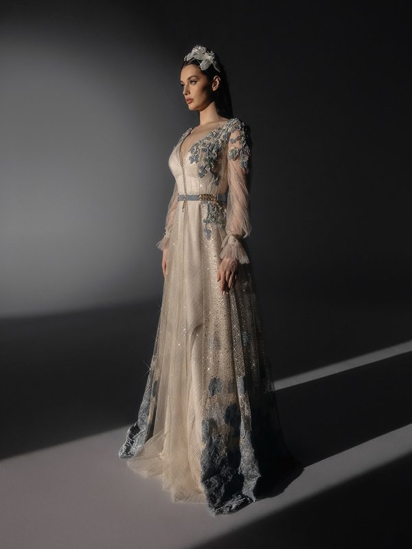 كل فستان من هذه المجموعة مصنوع بدقّة ويمزج ببراعة بين الأقمشة الفاخرة والتصاميم المعقدة لخلق جمالية آسرة تحرّك جميع الحواس.
