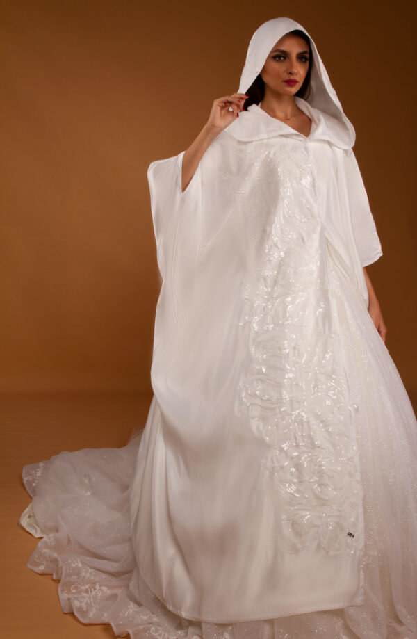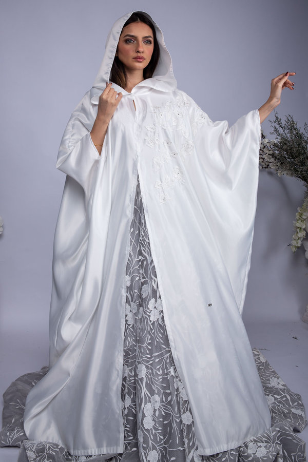 عباية عروس سادة من دوت تطريزات أو شك بأحجار براقة، يمكنك اختيارها لزفافك القادم.