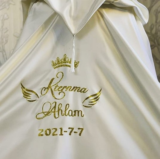 يمكنك كتابة اسمك واسم العرية على قماش العباية الخلفي بالخطوط الذهبية أو أي لون آخر.
