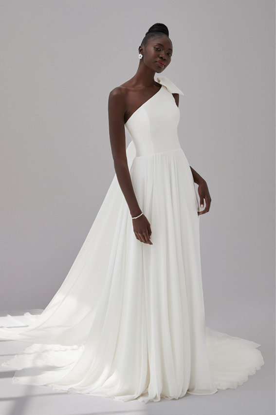 كوني جريئة في خيارك واختاري فستان زفافك بكتف واحد.