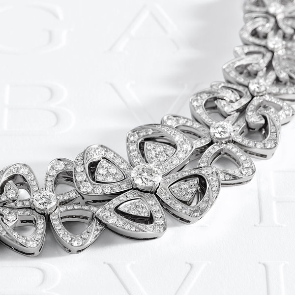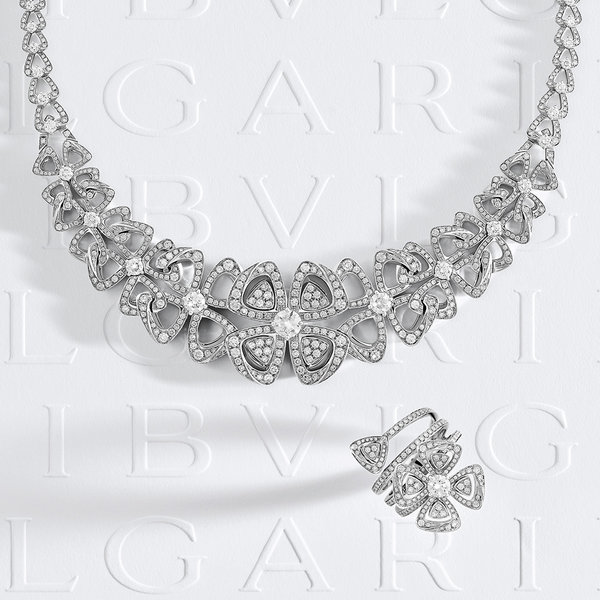 وتضم المجموعة طقماً حصرياً من الذهب الأبيض والألماس يتألف من قطعتي مجوهرات يمكن ارتداؤهما بطريقتين، وهما عقد مرصع بالألماس بوزن 6 قيراط ومزين بقفل صغير على شكل زهرة يمكن ارتداؤه بمفرده، وقلادة مزدانة بألماسة مستديرة في الوسط يمكن استخدامها كدبوس للزينة.