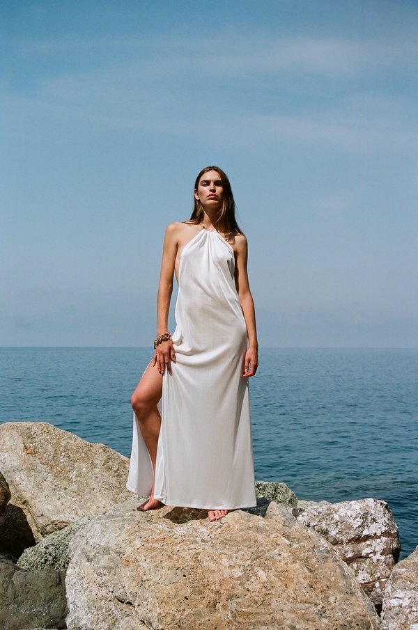 تتضمن مجموعة DANAME لصيف 2023 فساتين طويلة مصمّمة من الحرير بألوان المجوهرات ومزيّنة بقصّة مفرّغة.