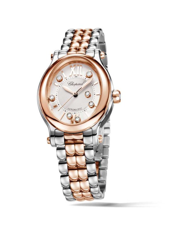 أعادت دار Chopard ابتكار ساعة Happy Sport الأيقونيّة التي تعود إلى العام 1993، فجاءت بتصميم بيضاوي وبسوار مرن تمّ تحديثه ليصبح مصنوعاً من الذهب الوردي عيار 18 قيراطاً أو من الفولاذ المقاوم للصدأ. ويتبع السوار منحنيات المعصم بشكل أنيق، ما يجعله نحيفاً وأخفّ وزناً وأنثويّاً للغاية.