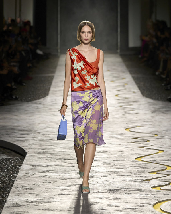 وبين طبعة نقوش Medusa ذات اللّمسات الذّهبية، طبعة الوردة البريّة، نقشة Barocco وسواها اجتمعت كل العناصر لتجعل هذا العرض من بين الأرقى ضمن أسبوع الموضة في ميلانو بحيث تتميز المجموعة بأسلوب الشّكل الذي يحافظ على السّهولة والبساطة مع النّمط المتسع من الأعلى للأسفل.