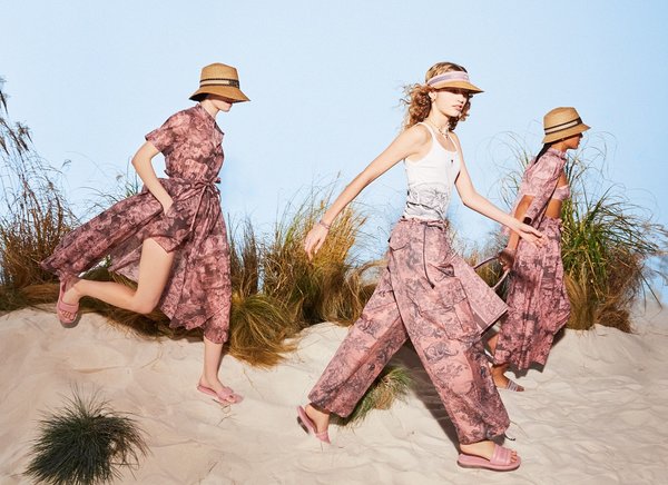 لهذا الصيف تتألق الملابس الجاهزة اللوازم الجلدية، الأحذية والأكسسوارات من مجموعة Dioriviera بألوان زاهية. حيث تم الكشف عن إصدار فاخر لنمط Toile de Jouy، الرمز الخالد الذي أعادته المديرة الفنية لمجموعات Dior للنساء إلى الحياة، حيث تتعايش النمور والقرود والزواحف.