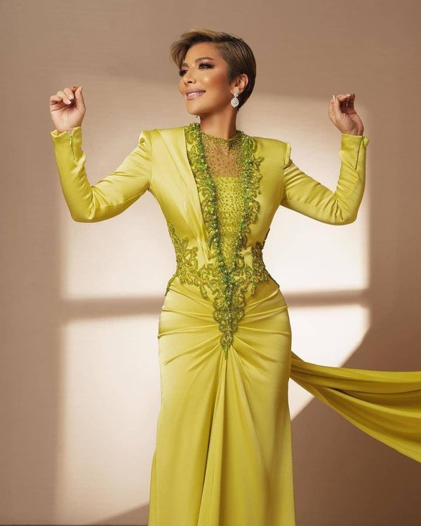 لهذا الحفل الذي أحيته ضمن موسم صيف جدة، أطلت نانسي عجرم على جمهورها بفستان أخضر اللون مطرز بالكامل من توقيع المصمم إيلي صعب.