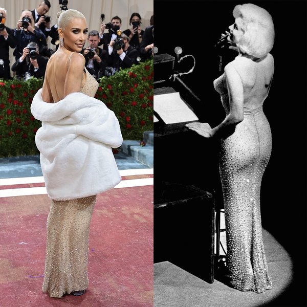 البداية مع إطلالة كيم كارداشيان التي صممت على اعتماد إطلالة مارلين مونرو أثناء تقديمها لأغنية Happy birthday، Mr President إلى جون كنيدي عام 1962. في التفاصيل، اختارت كيم فستان الراحلة الذي حمل توقيع Jean Louis والمصنوع يدوياً من الحرير مزين بـ2500 حبة كريستال.