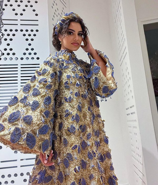 نجود الرميحي اختارت تصميم من KAF by kawthar Alhoraish مزين بأكثر من 500 ألف خرزة.