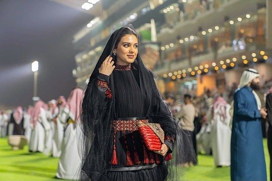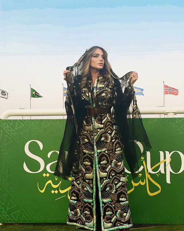 آرام القباني سحرتنا بلوكاتها في كأس السعودية 2022، ففي اليوم الأول أطلت بعباءة من Razan Alazzouni.