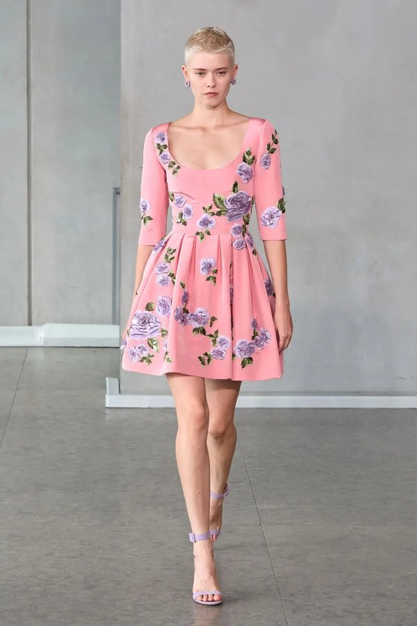 إختارت العلامة العريقة كارولينا هيريرا Carolina Herrera أن تجسد مفاهيم الدار من خلال التركيز على الألوان المفعمة بالحيوية من درجات الأصفر والأرجواني والوردي إضافةً الى الزخارف البسيطة.