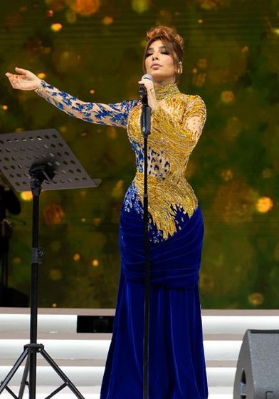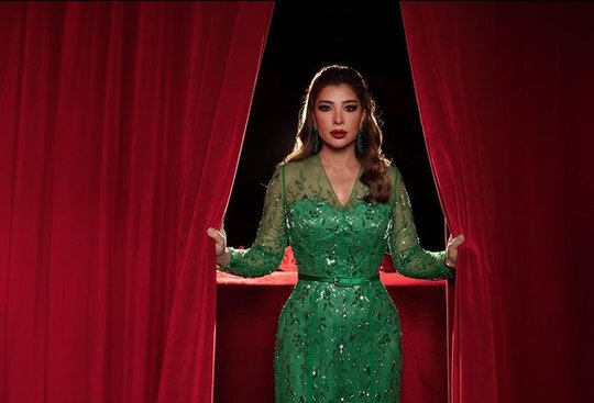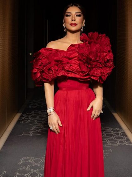 فستان من تصميم نيكولا جبران مميز بألوانه والتي جعلت من الفنانة أصالة محط أنظار الجميع.