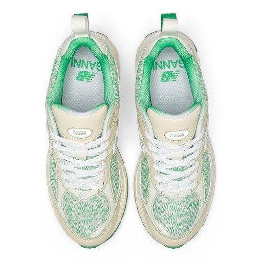 يتميز الحذاء الرياضي الجديد بأسلوبه الذي يجمع ما بين الأناقة والراحة حيث تم توحيد الرؤية ما بين التراث الابداعي الذي تتميز به علامة New Balance و #GANNIgirls، فأتت النتيجة أكثر من رائعة: حذاء يجمع ما بين تدرجات اللون الأخضر والرمادي مزين بشعار GANNI الذي صمم حصرياً لهذا التعاون.