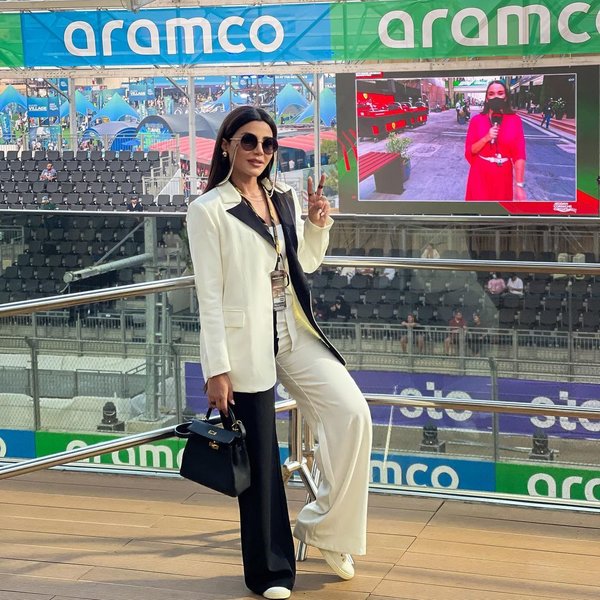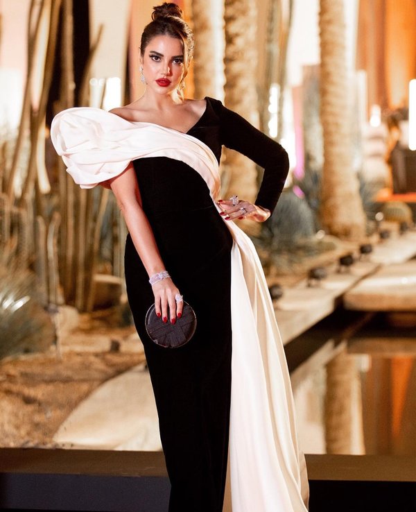 بدلة مهيرة عبد العزيز باللون الأبيض والأسود
