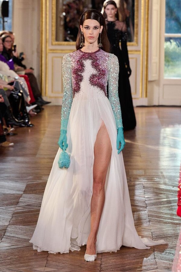 استوحى المصمم جورج حبيقة مجموعته من الحقبة الممتدة من الخمسينيات الى السبعينيات وعلى أغاني أم كلثوم، عُرضت الأزياء الرائعة بنفحة عربية، لبنانية، شرقية، جعلت كل الحاضرين فخورين بهذه التصاميم التي اعادتنا بالذاكرة الى الزمن الجميل ونسائنا الراقيات.