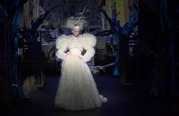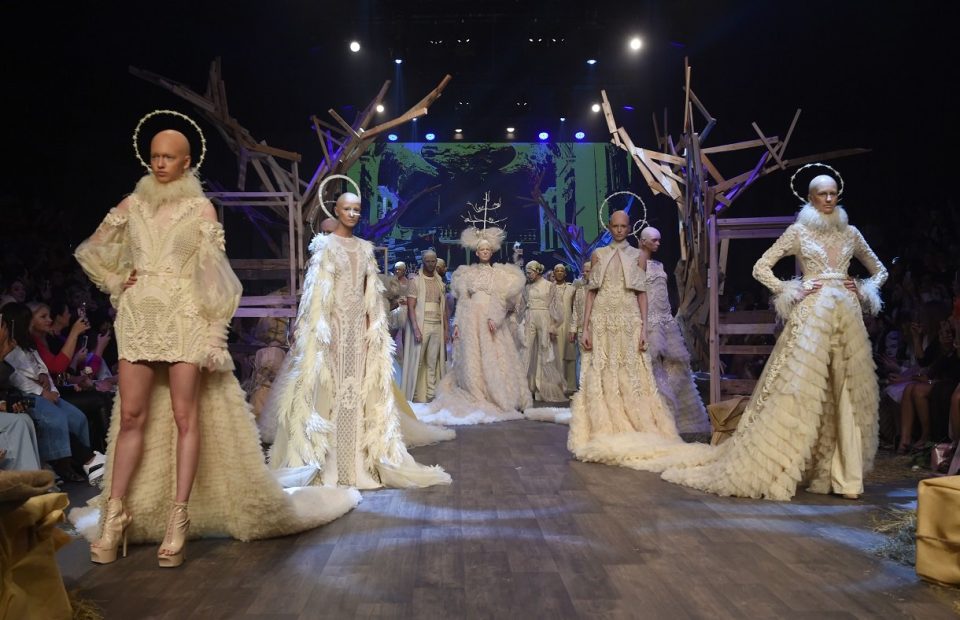 الأكمام المنتفخة، طبقات الشيفون، الكشاكش والتول الشفاف، كلها ظهرت بشكل واضح في الفساتين البيضاء والكابات الطويلة المطرزة والتنانير المنتفخة، إلى جانب الفساتين المصنوعة من الريش والمستوحاة من فنون الزخرفة القديمة.
