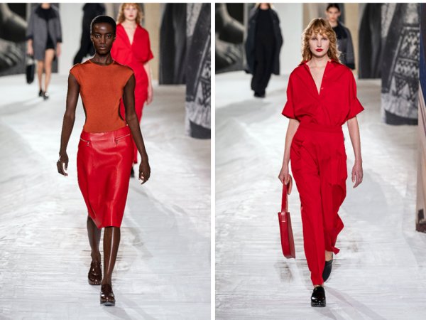 وما لفت انتباهنا، الجلد الذي دخل في العديد من التصاميم. أما لوحة الألوان تنوعت ما بين الأسود، النيود والألوان القوية التي نسقت معاً كالبرتقالي والأحمر.