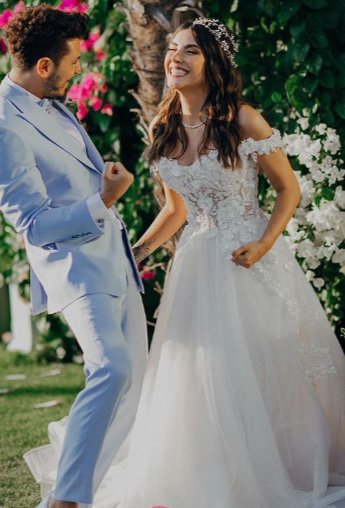 بفستان أبيض بسيط وتسريحة شعر ناعمة، احتفلت النجمة التركية دينيز بايسال المعروفة عربياً باسم "هازان" في مسلسل "فضيلة خانم وبناتها" بزواجها من المغني التركي باريش يورتشوا، وسط حضور عدد كبير من أصدقائهما.