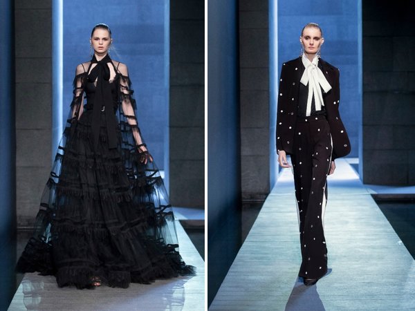 رصدنا في المجموعة أيضاً عودة الجامبسوت بقصة الكتف الواحدة. أما من ناحية باليت الألوان هيمن الأسود على معظم اللوكات، إلى جانب الأبيض والقليل من النيلي والأخضر الفاتح والزهري المرهف.