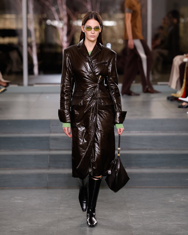 أما Coach فشعرنا أننا نعود الى حقبة أواخر التسعينات مع جاكيتات الجلد التي كانت بارزة بقوة أكانت القصيرة أو الطويلة مع النظارات الشمسية، القمصان الخفيفة والطويلة مع التركيز على ألوان معينة منها البنفسجي الداكن، الاحمر العميق والأصفر.
