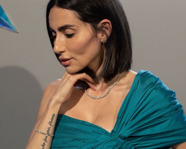 أما زينة مكي فنسقت عقداً وسواراً وخاتماً من مجموعة Tiffany HardWear.