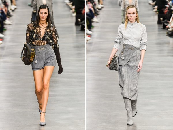 الطابع العملي كان الحاضر الأبرز في مجموعة Fendi لخريف وشتاء 2022-2023 فتنوعت الأزياء ما بين السروايل بالقصات المستقمية، التنانير الضيقة، الشورت على شكل تنورة، البلايزرات