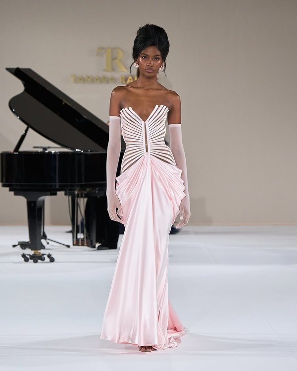 تعمل عناصر الأزياء الراقية، مثل أربطة الكورسيه، الشالات ذات الريش والحرير المطوي على رفع درجة الأنوثة فتبلغ ذروتها في العمق العاطفي لرؤية دار تمارا رالف، حيث تمزج بين الحرفية التقليدية والجمال المعاصر.