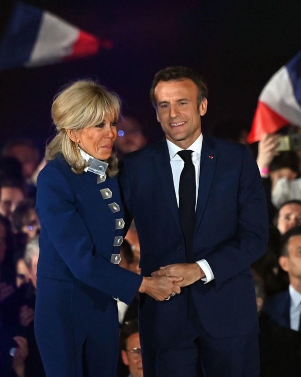 مع فوز إيمانويل ماكرون بولاية ثانية، لا بد أن نتوقف عند إطلالة بريجيت ماكرون التي اختارتها بعيد إعلان النتيجة.