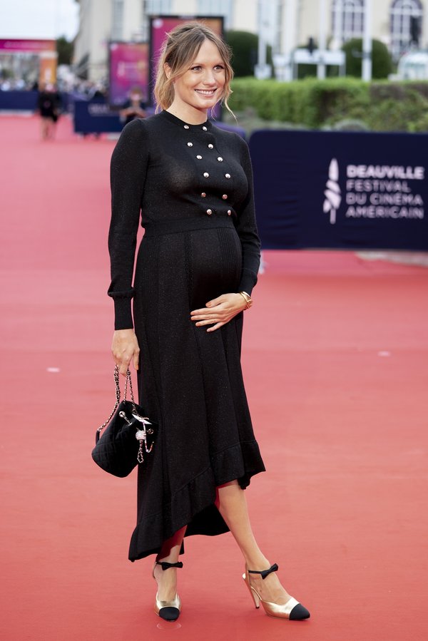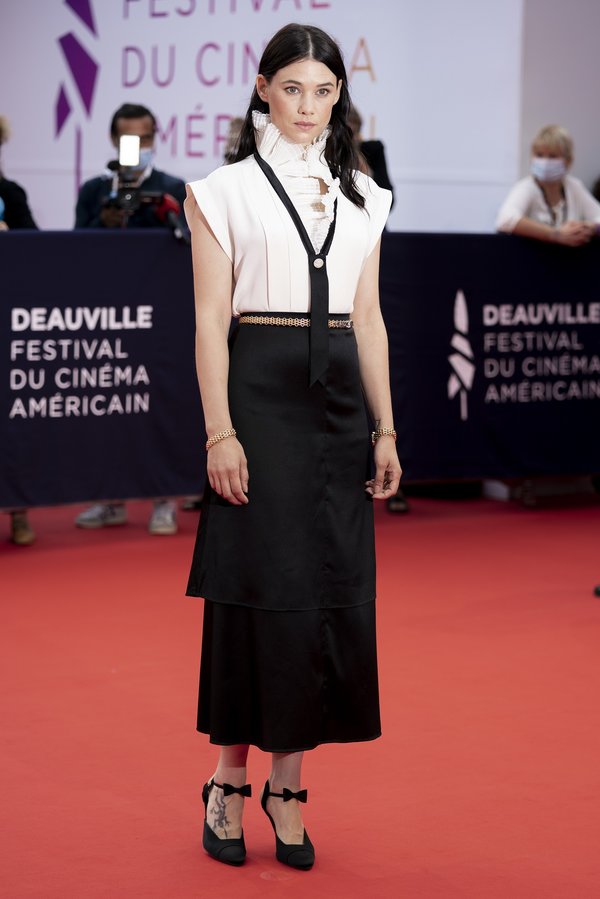 بدورها اعتمدت الممثلة الفرنسية تصميماً من Chanel، فنسقت تنورة من الحرير باللون الأسود مع قميص أبيض ذات ياقة عالية من مجموعة خريف وشتاء 2020-2021.