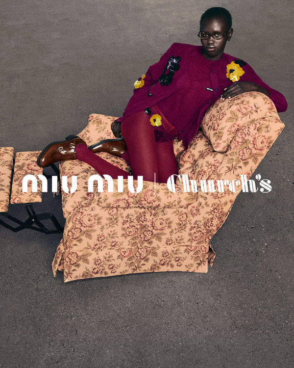 يترافق الاحتفال بهذا التعاون حملة إعلانية تستعرض مجموعة من الصور ذات الديكور المستوحى من أرشيف Miu Miu. حيث أطلت العارضات وهن يعتمدن تصاميم من مجموعة Miu Miu X Church’s بستايل البروغ.