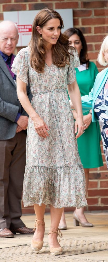 من المعروف أنّ دوقة كامبريدج تختار ملابسها بدقة كبيرة، فخلال مشاركتها في ورشة عمل عن التصوير حيث سلمتها الملكة إليزابيث مهمة الإشراف على الجمعية الملكية للتصوير الفوتوغرافي،  اعتمدت الأسلوب الرياضي فارتدت فستاناً مطبّعاً يصل إلى حدود الركبة من علامة Ridley نسّقته مع حذاء رياضي ذات الكعب المصنوع من القش، وهو يعدّ الحذاء غير الرسمي الذي يمكن اعتماده من قبل أفراد العائلة المالكة.
