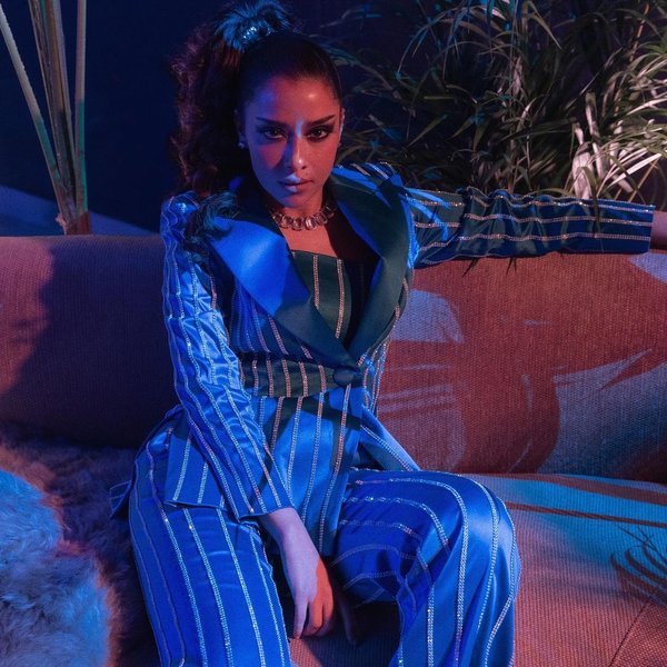 في التفاصيل، أطلت بلقيس فتحي على جمهورها ببدلة رسمية تميزت بلونها الأزرق مع التقلمات البراقة باللون الفضي من تصميم YASMIN MANSOUR .