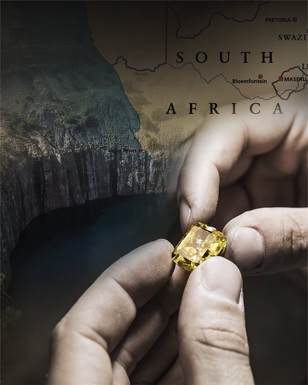 في العام 2019، تم اكتشاف حجر من الماس الأصفر الخام بوزن يفوق 100 قيراط، وذلك على ضفاف نهر فال قرب منطقة كيمبرلي في جنوب أفريقيا.