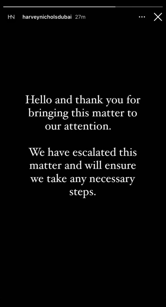 وفي سياق هذا القرار، أعلن كل من هارڤي نيكلز دبي وبلومينغديلز الشرق الأوسط اتخاذ الإجراء نفسه بحق هذه العلامة المذكورة أعلاه. بدوره اكتفى أعلن متجر هارڤي نيكلز الدوحة أنه "تمت إزالة العلامة من العرض".