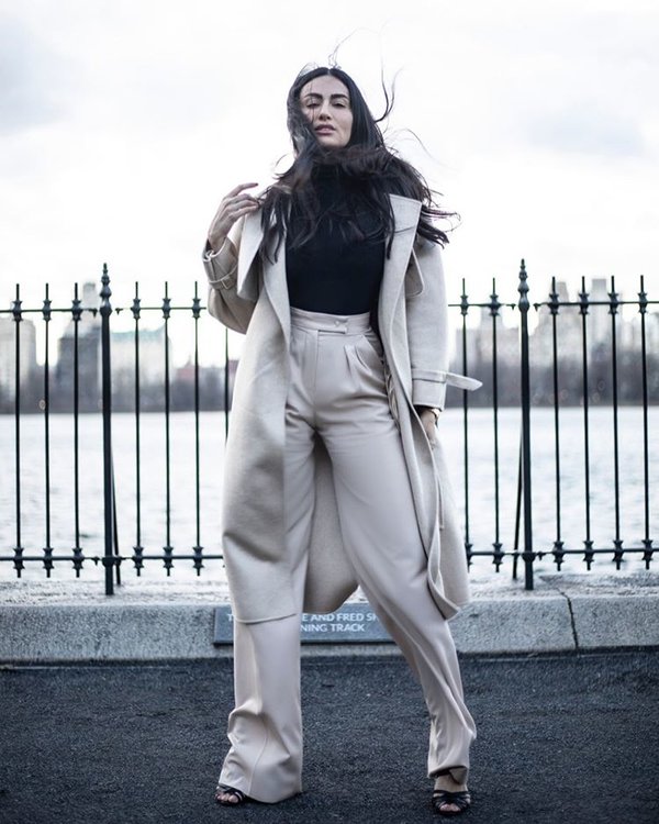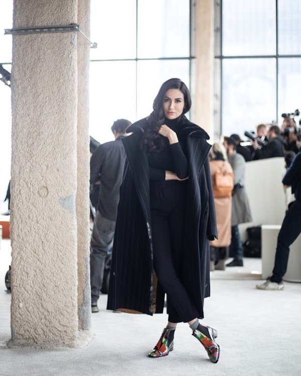رصدنا هذه الصيحة في عروض الأزياء أكان في نيويورك أو ميلانو، وكانت أيضاً خيار ديالا إذ نسقت السروال العالي الخصر مع كنزة باللون الأسود ومعطف طويل.