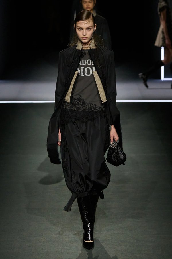 وضمن 80 قطعة، لاحظنا أيضًا عودة تيشيرت J’Adore Dior بألوان مختلفة مع المعاطف الفضفاضة التي تعد من صيحات موسم 2026.