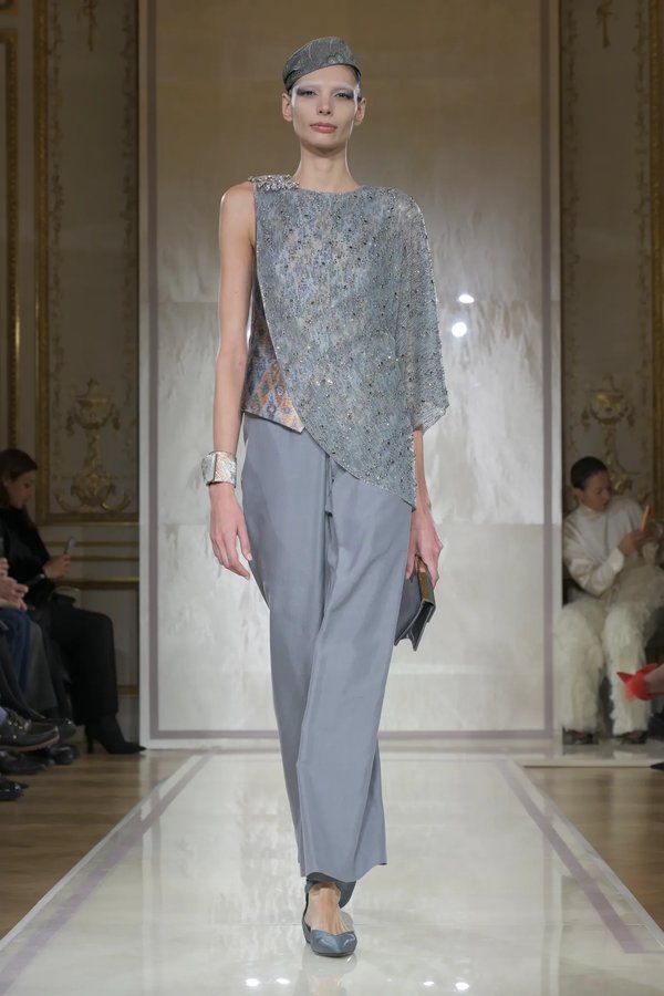 وكأنها لوحة فنية، تبخترت عارضات Armani Privé بالأقمشة الحريرية، الشيفون، الساتان وتلك الرقيقة الى أبعد الحدود من دون ان ننسى التطريزات اليدوية البراقة.