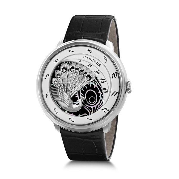 إصدار جديد من ساعة Compliquée Peacock طرحته Fabergé بالتعاون مع جان مارك ويدريخت Jean-Marc Wiederrecht من شركة Agenhor والحرفي الماهر أندريه مارتينيز André Martinez ، المتخصّص بفنّ رسم اللوحات الصغيرة على ميناء الساعات.